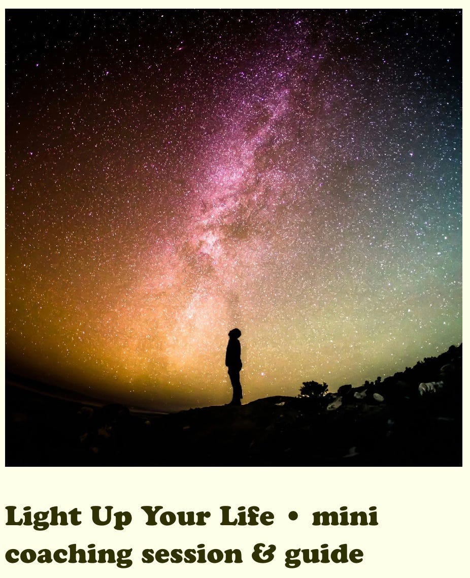 Light Up Your Life is a recorded mini coaching session (25 min) with a 21- year Love and Leadership Coach (me), including a 2-page guide for notes. This session offers a small slice of the Making Love to Life process, so you can step into the life you’re meant to live — one that’s lit-up by the passion of your truest self. Just $12, here it is.